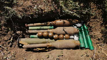 В закопанном мешке находилось 2 выстрела ТБГ-7В, 3 выстрела ПГ-7ВЛ, 6 гранат РГН, 6 запалов УДЗ, 1 выстрел РПГ-26, 5 вышибных зарядов к выстрелам гранатомета и 114 патронов калибра 7,62 мм.