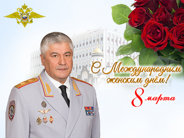 Министр внутренних дел Российской Федерации пожелал женщинам крепкого здоровья, благополучия, душевных сил и всего самого доброго.