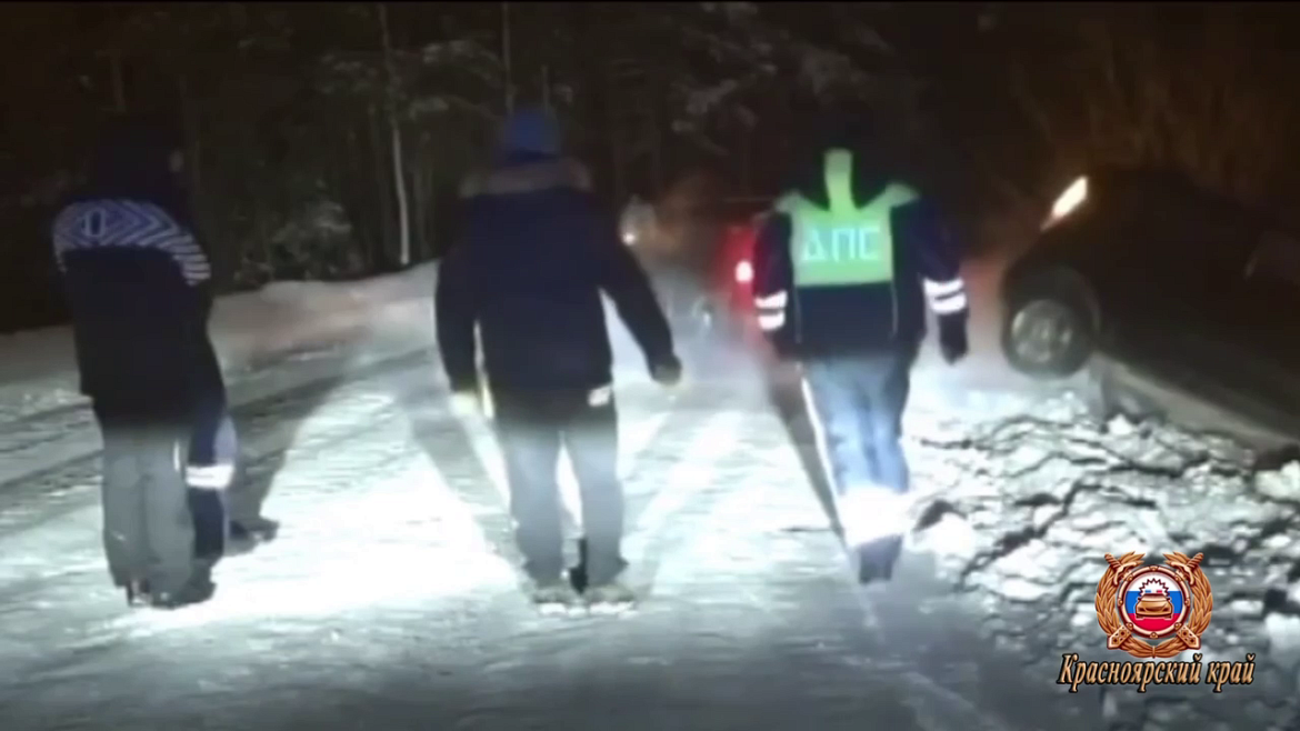 Автоинспекторы помогли семье с младенцем, чья машина слетела с трассы в сугроб в Красноярском крае