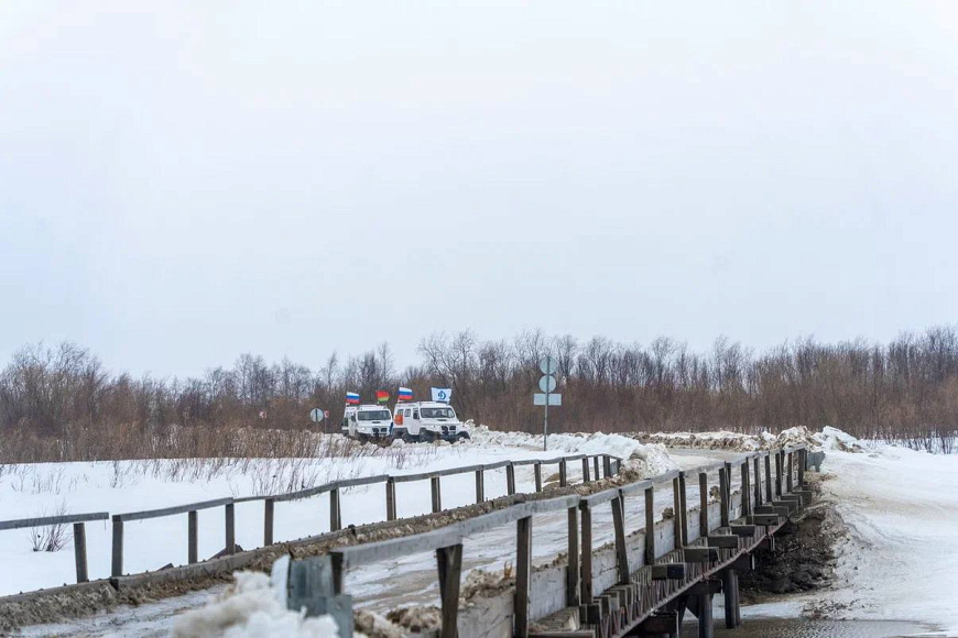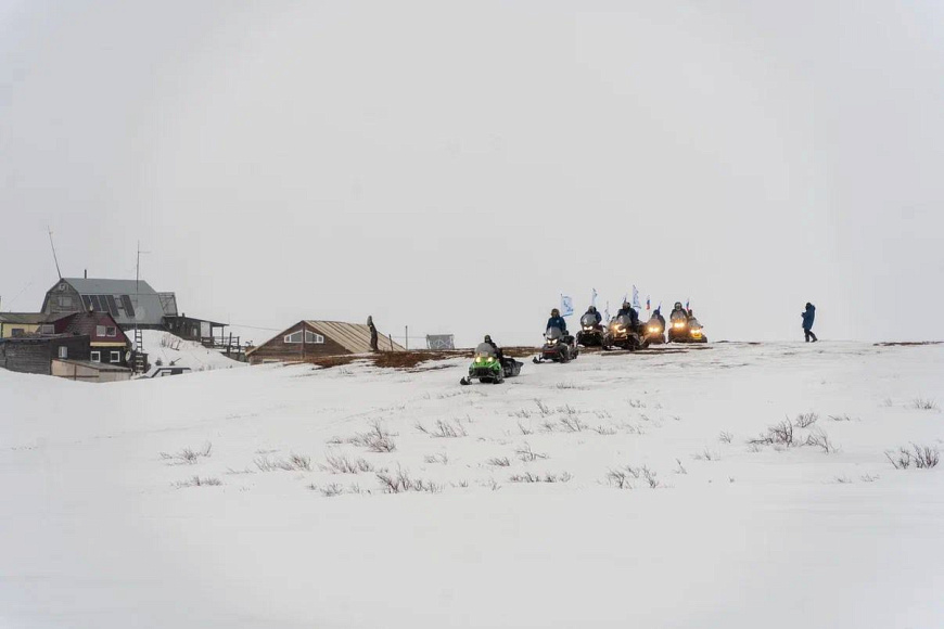 На следующий день, преодолев большое расстояние на вертолетах и снегоходах, участники экспедиции добрались до острова Вайгач, который считается священной землей коренных народов Севера, а в военные годы стал важным стратегическим рубежом, через который проходили арктические конвои, доставлявшие жизненно важные грузы. Там делегация отправилась к проливу Карские Ворота.