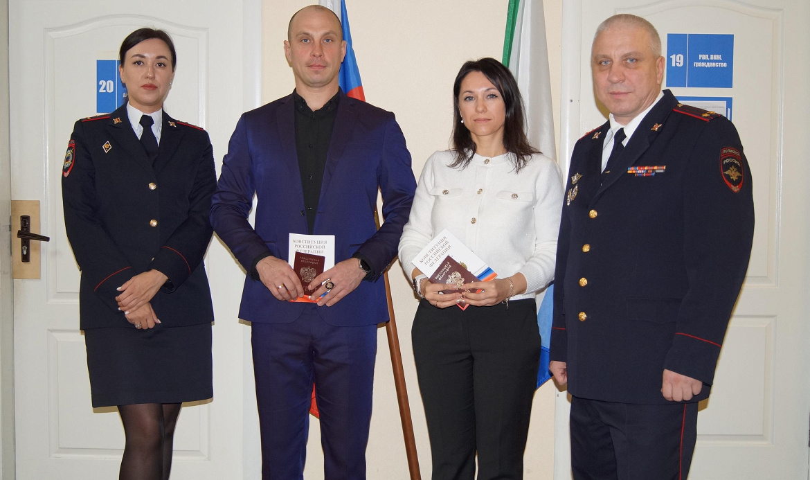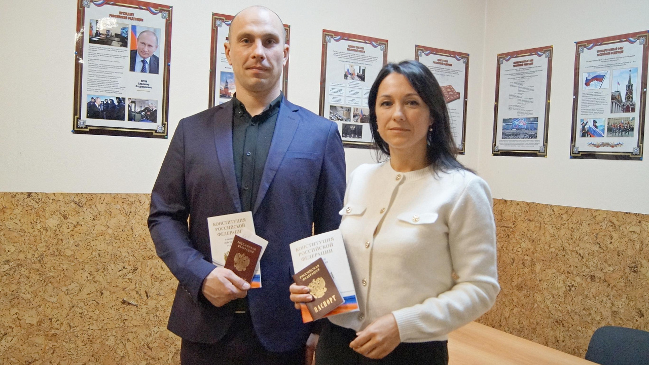 В Хабаровске сотрудники отдела по вопросам миграции городского Управления МВД России вручили российские паспорта супругам Артёму Заздравных и Инге Терескиной-Заздравных, которые с рождения проживали в Латвии, но приняли решение стать гражданами России.