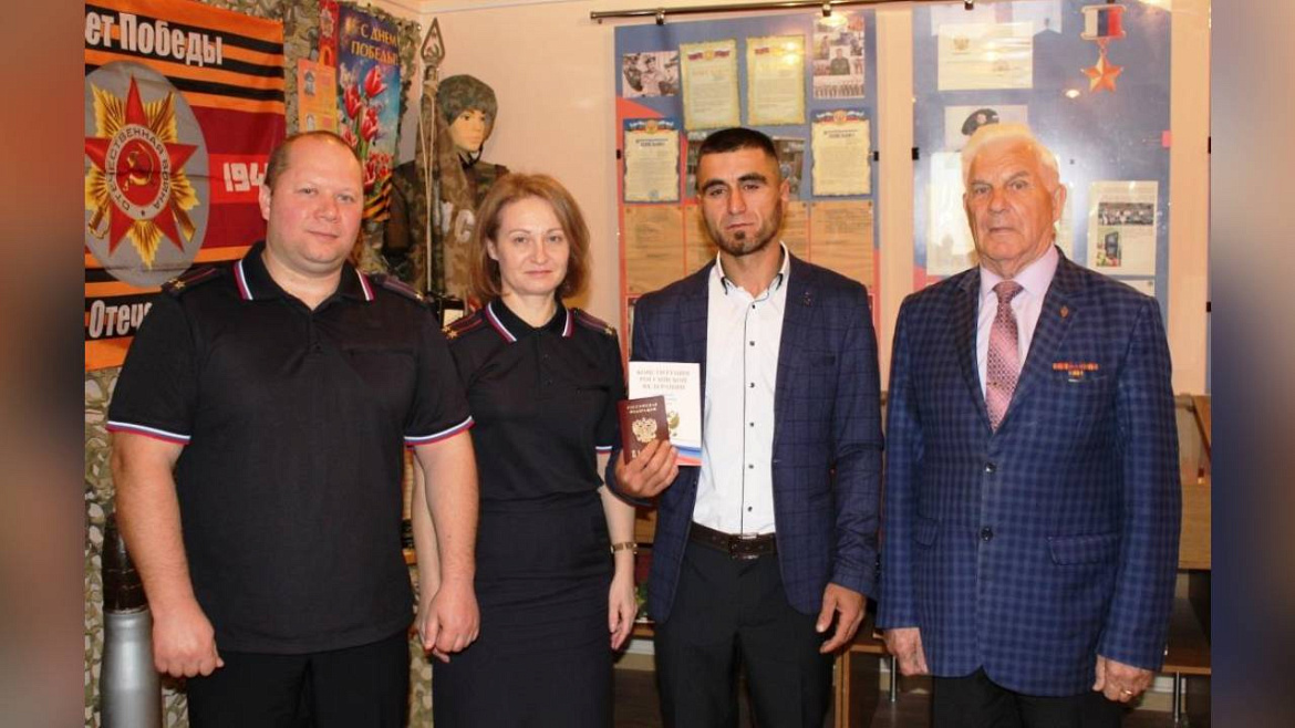 Для получения паспорта доброволец покинул воинскую часть города Донецка и прибыл в Комсомольск-на-Амуре. Уроженец Таджикистана в торжественной обстановке принёс Присягу гражданина Российской Федерации и получил из рук сотрудников полиции российский паспорт.
