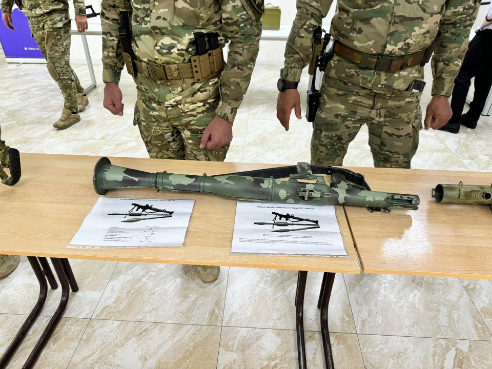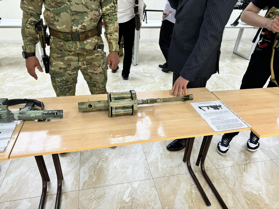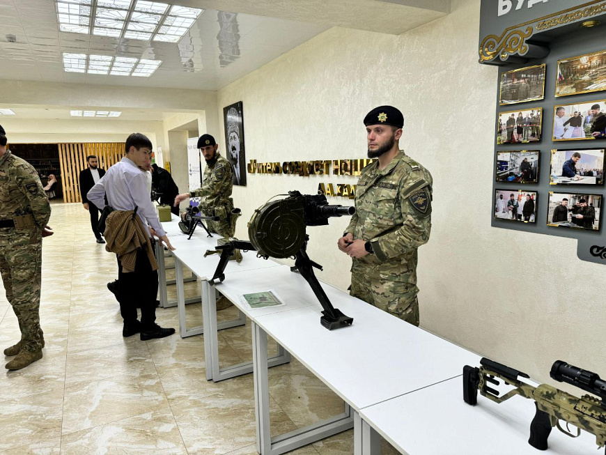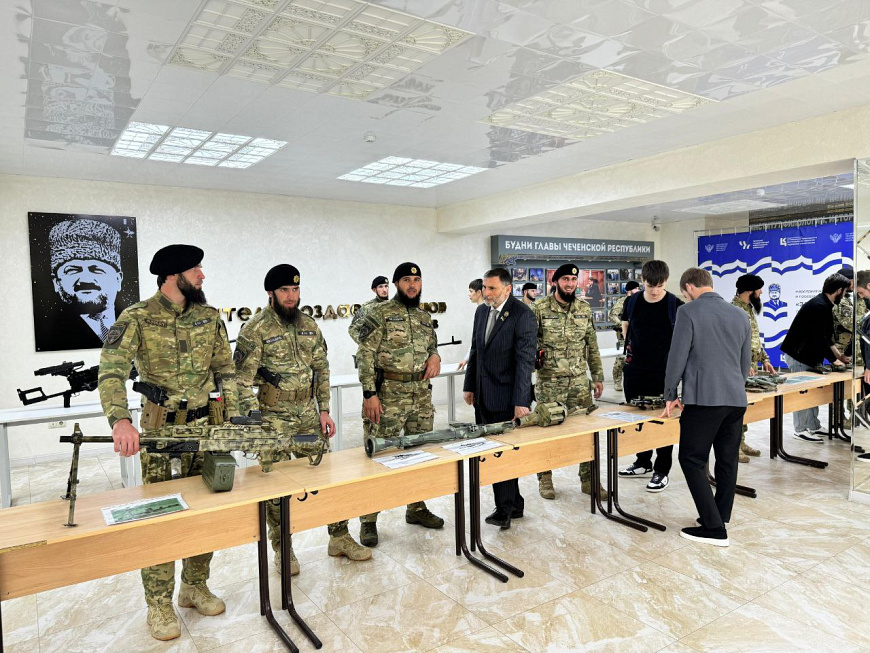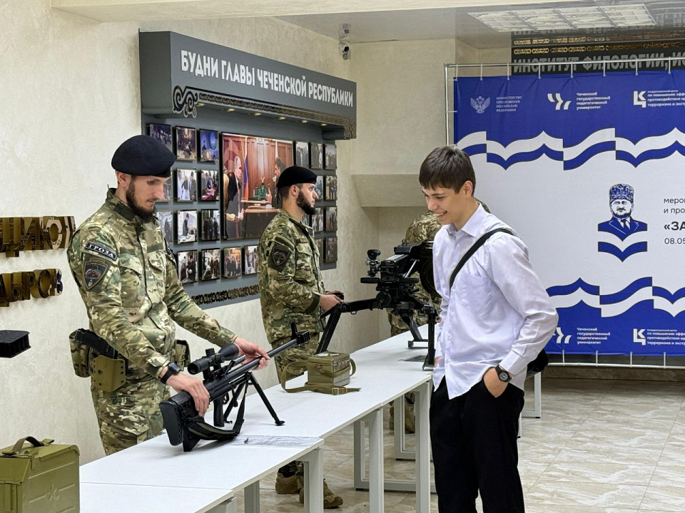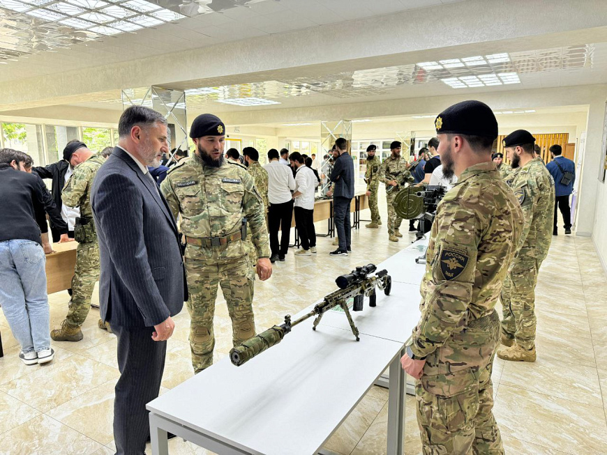 Ко Дню Победы сотрудники спецполка полиции Чечни организовали выставку оружия для студентов