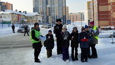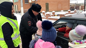 Инспекторы помогали юным пешеходам правильно переходить проезжую часть, показали, как нужно использовать световозвращающие элементы и рассказали о их пользе.