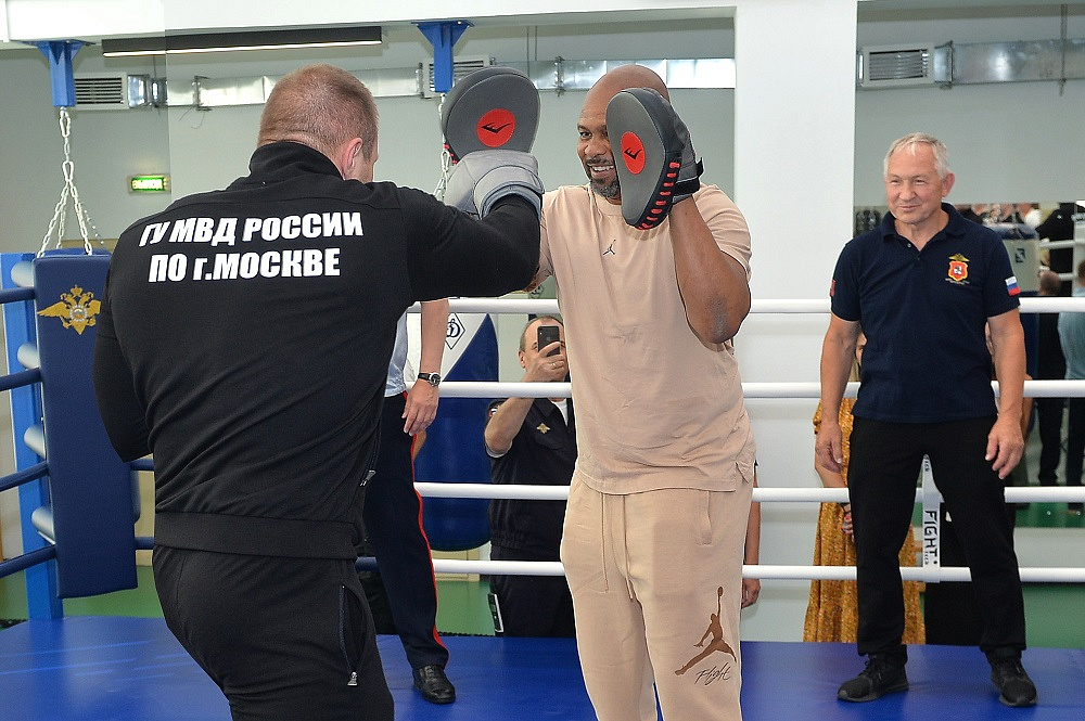 Легендарный боксёр Рой Джонс-младший принял участие в открытии зала бокса в УВД по Западному административному округу Москвы