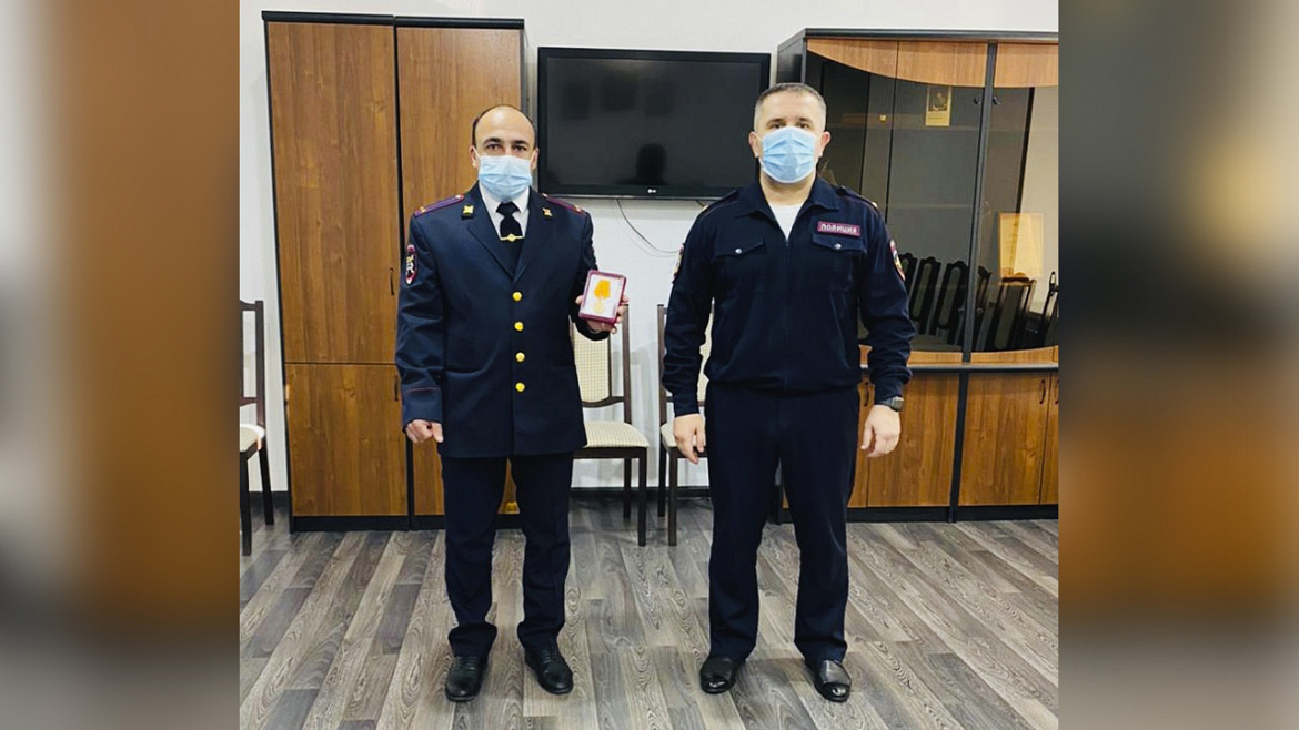 Высокую награду Анзору Этезову в торжественной обстановке вручил начальник ОМВД России по Эльбрусскому району подполковник полиции Арсен Шаваев. Он поблагодарил сотрудника полиции за добросовестное выполнение своих должностных обязанностей и проявленную смелость при спасении человека, а также пожелал успехов в дальнейшей службе.