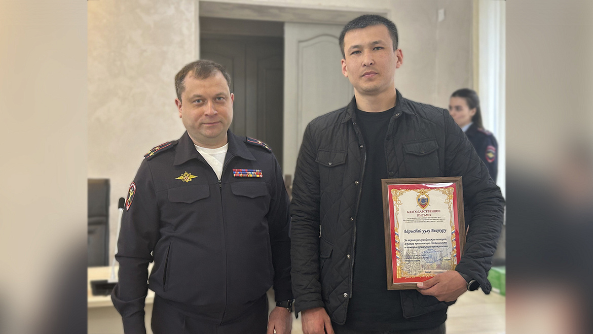За проявленную гражданскую позицию и оказание помощи в предотвращении преступления начальник УВД по СВАО ГУ МВД России по г. Москве полковник полиции Рамиль Гафуров вручил благодарственное письмо гражданину, который помог пресечь мошеннические действия в отношении пожилого жителя столицы.