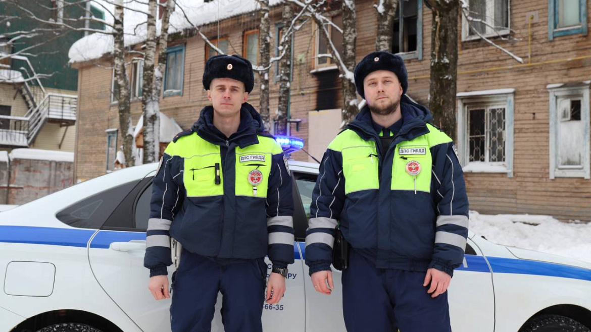 В дежурную часть УМВД России по городу Сыктывкару поступило сообщение о возгорании многоквартирного деревянного дома по улице Оплеснина. На место происшествия незамедлительно был направлен экипаж в составе инспекторов отдельного батальона ДПС Госавтоинспекции лейтенантов полиции Александра Юданова и Владислава Заболотовского.