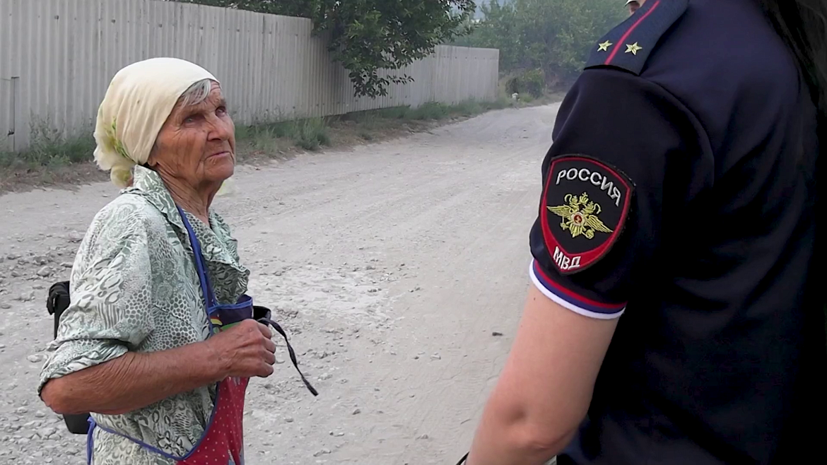 Полицейские ЛНР оказывают помощь жителям объятых огнём дачных массивов в Станично-Луганском округе