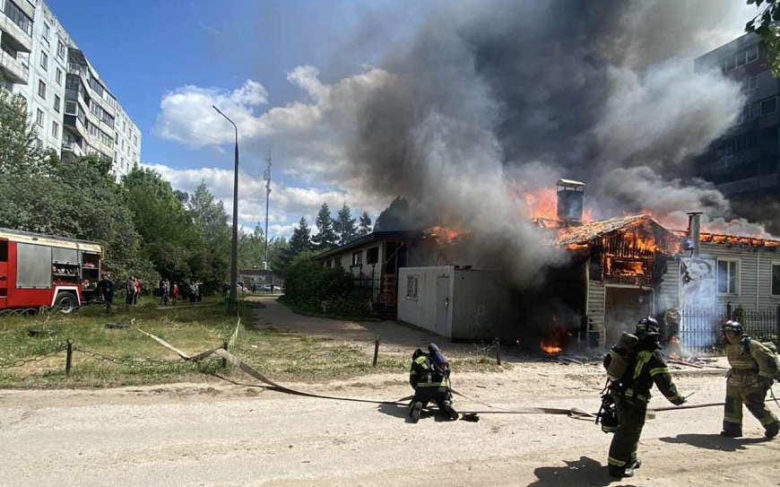 Полицейские Пскова вывели жильцов многоэтажки, окутанной дымом от горевшего рядом ресторана