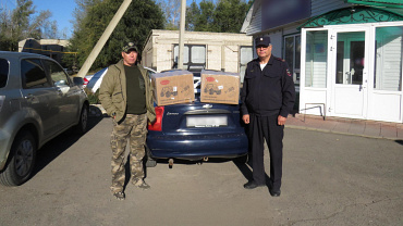 Стражи правопорядка подготовили продуктовые наборы, тактические аптечки и медикаменты, маскировочные сети и вместе с пиломатериалом загрузили в машины и отправили в зону боевых действий.