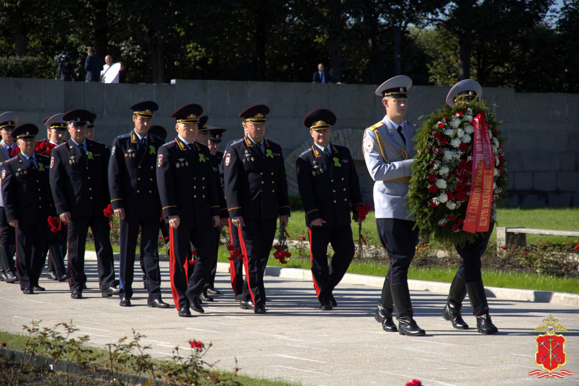 В мероприятии принял участие руководящий состав ГУ МВД России по г. Санкт-Петербургу и Ленинградской области во главе с начальником Главка генерал-лейтенантом полиции Романом Плугиным. Полицейские проследовали к подножию центрального монумента мемориала «Мать-Родина», где возложили венки и цветы.