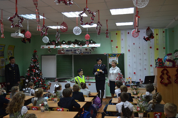 Полицейские напомнили учащимся об основных правилах безопасности при переходе проезжей части, а также мерах безопасности во время зимних игр. После чего автоинспекторы провели устный опрос знаний ПДД у детей, разобрали с ними ошибки, которые часто совершают их сверстники на дороге, и подарили световозвращающие брелоки, которые обеспечат их безопасность на улице в темное время суток.