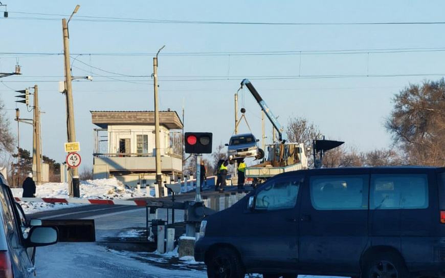 Инспекторы дорожно-патрульной службы при помощи эвакуатора, который находился неподалёку, убрали автомобиль с путей. Вся операция заняла несколько минут.