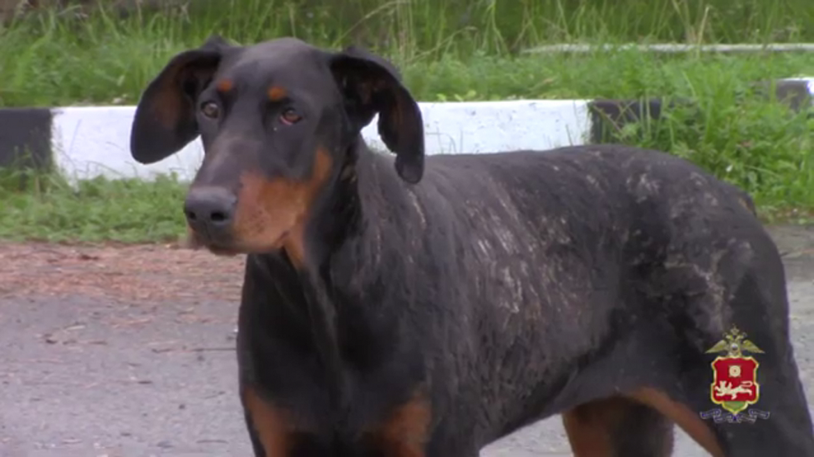 В Абазе полицейские Хакасии вместе с гражданами вызволили добермана, увязшего в битумной смеси