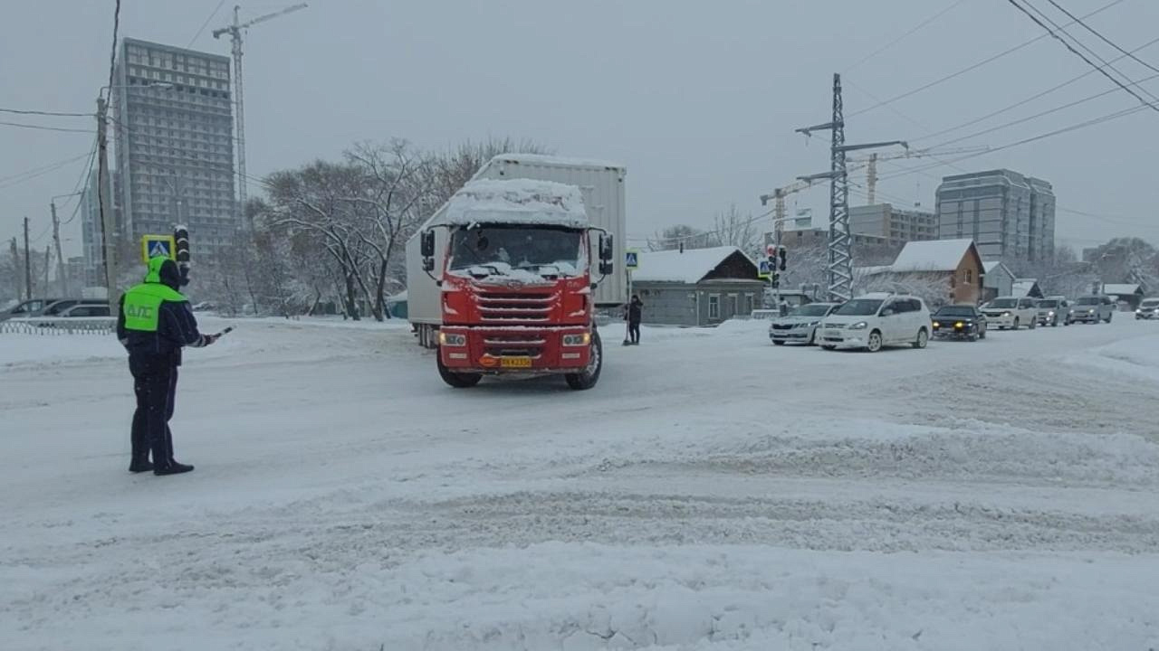 Госавтоинспекторы продолжают следить за обстановкой на дорогах Приамурья. Полицейские осуществляют деятельность по обеспечению безопасного проезда при очистке спецтехникой трасс, занесённых снегом, при необходимости перекрывают аварийные участки дорог, помогают автомобилистам вытянуть попавшие в снежный плен транспортные средства.