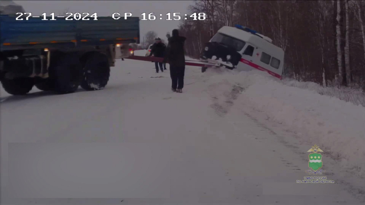 В Амурской области полицейские помогли вытащить из кювета машину скорой помощи