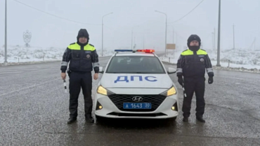 Из-за пурги водитель автомобиля Kia съехал с дороги в кювет и оказался в снежном плену. Инспекторы ДПС попросили водителя грузовика вытащить иномарку на проезжую часть.