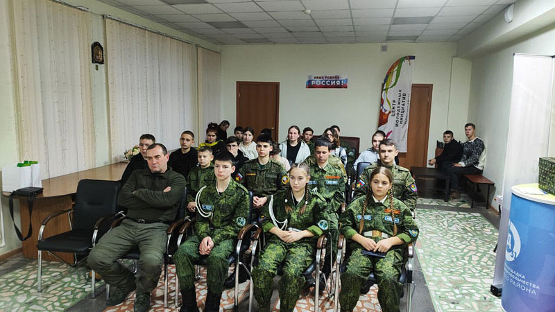 Старший участковый уполномоченный ОМВД России по Ровеньскому району старший лейтенант полиции Вячеслав Евсюков и ветеран СВО Александр Шугайлов, удостоенные государственных наград, провели в Центре молодежных инициатив Урок мужества для подрастающего поколения. Участниками мероприятия, приуроченного ко Дню Героев Отечества, стали воспитанники военно-патриотического клуба «Русич» и юные жители района.