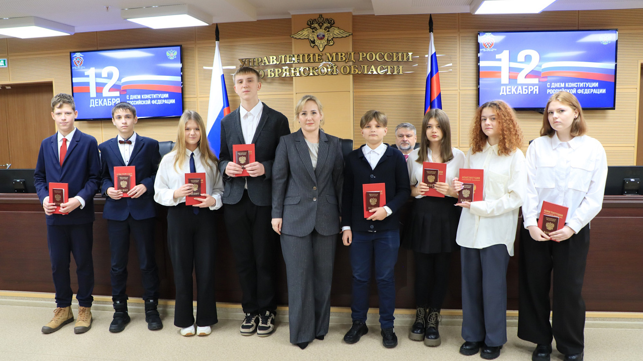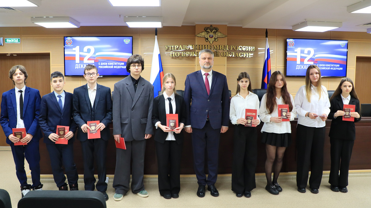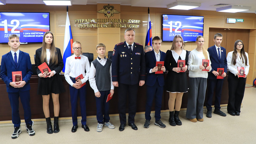 Вместе с паспортом гражданина Российской Федерации участники церемонии получили в подарок издание Конституции РФ. В завершение мероприятия для ребят провели экскурсию по зданию УМВД России по Брянской области.