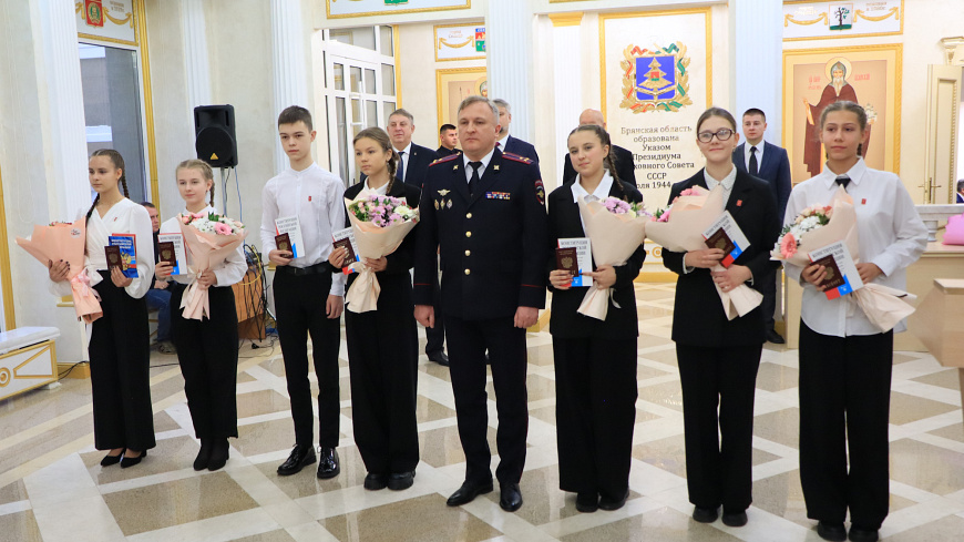 В этот же день начальник областного УМВД полковник полиции Алексей Солдатов принял участие в торжественной церемонии вручения учащимся первых паспортов, которая прошла в Правительстве Брянской области.