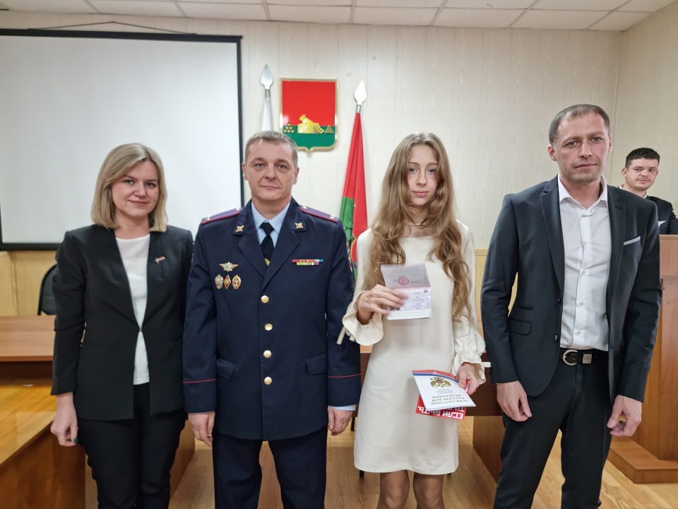 В Брянске 1 декабря в администрации Советского района областного центра состоялась церемония вручения паспортов гражданина Российской Федерации. Совместно с представителями органов власти и общероссийского общественно-государственного движения детей и молодежи «Движение первых» полицейские вручили основной российский документ, удостоверяющий личность, шестнадцати подросткам.