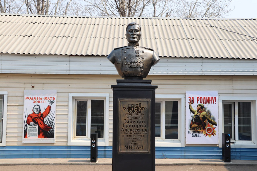 В Забайкальском крае в преддверии празднования 80-летия Великой Победы на территории Читинского линейного отдела МВД России на транспорте состоялась торжественная церемония открытия памятника Герою Советского Союза старшине милиции Григорию Алексеевичу Забелину.