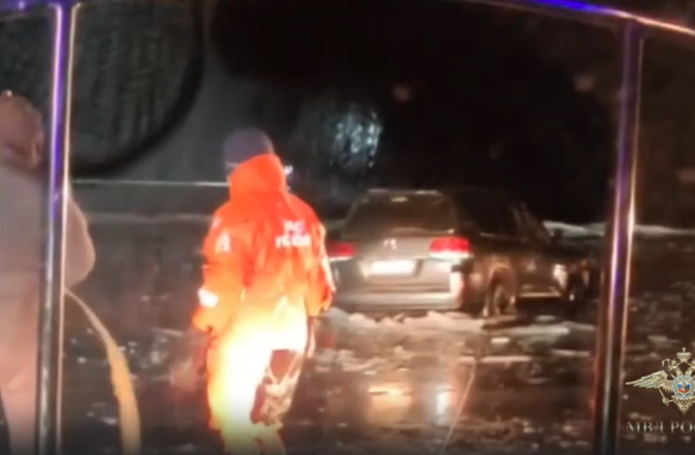 Вместе с одним из прохожих лейтенант полиции Тимур Тумгоев смог сильным рывком открыть дверь горящего автомобиля и эвакуировать пострадавшего. После этого в горящей иномарке произошёл взрыв.