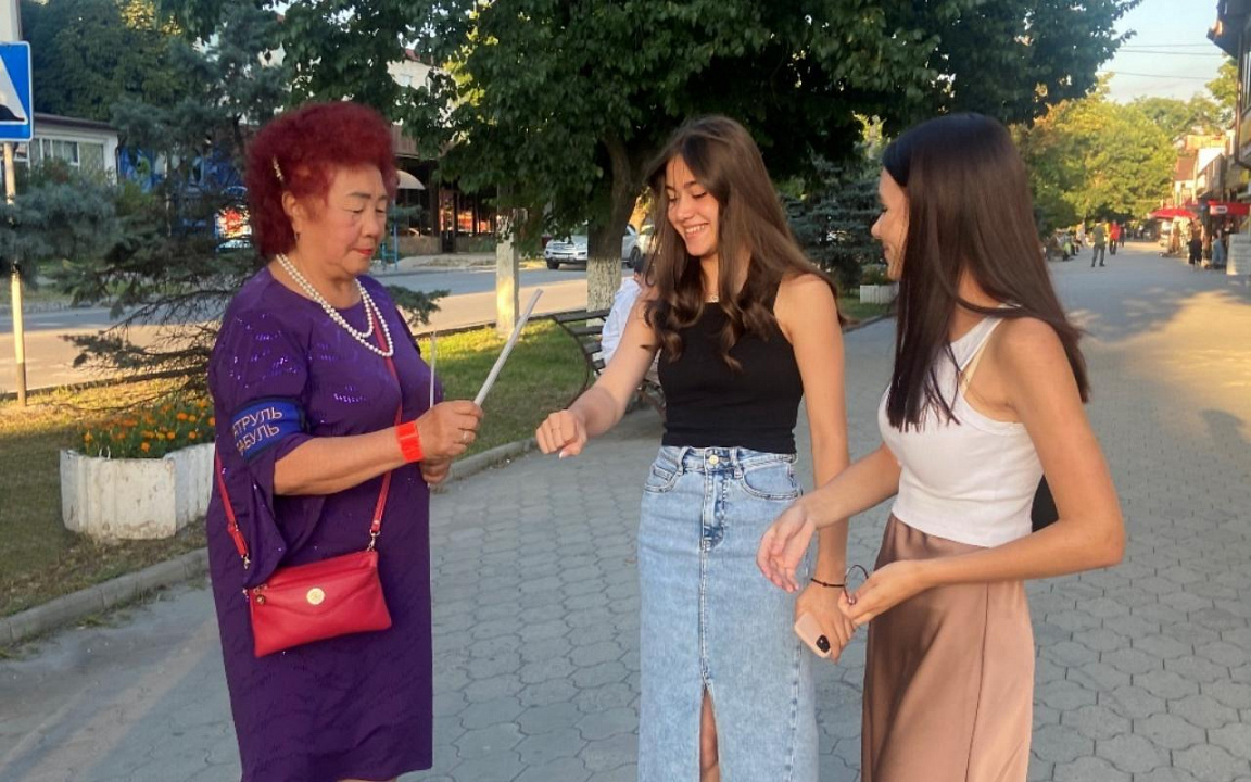 Неравнодушные к вопросам дорожной безопасности женщины благородного возраста, представители Всероссийской общественной организации «Боевое братство» Галина и Татьяна Сычевы, Светлана Ли, Наталья Назарова и Людмила Шевченко, обозначив себя специальными повязками с надписью «Патруль бабуль», патрулировали улицы и пешеходные переходы.