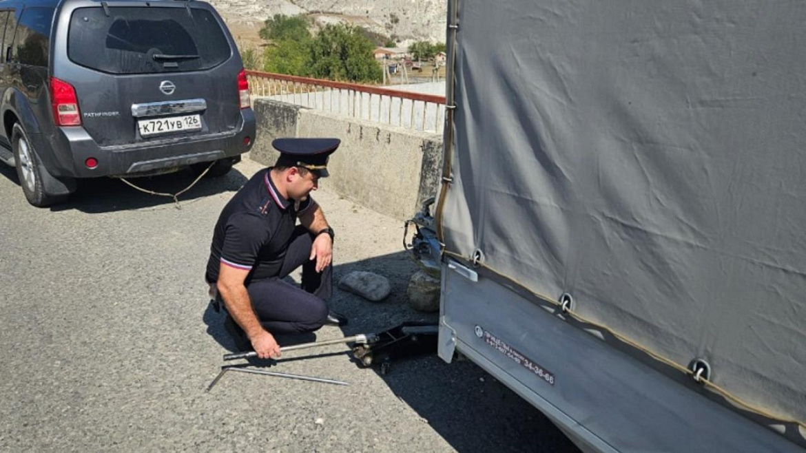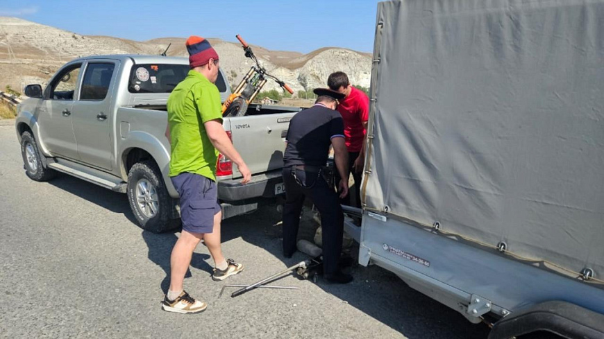 В Карачаево-Черкесии автоинспекторы помогли туристам, у которых от машины отсоединился прицеп