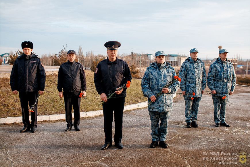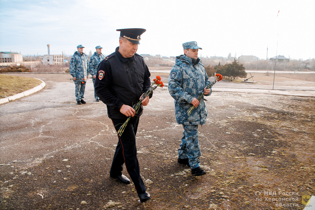 В Херсонской области в день Воинской славы России полицейские возложили цветы к мемориалу «Пушка»