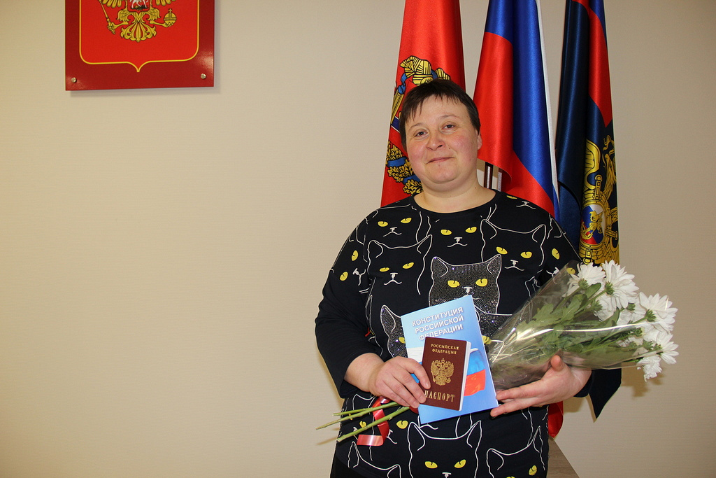 В Красноярске сотрудники Управления по вопросам миграции ГУ МВД России по краю вручили паспорт гражданина Российской Федерации Наталье Головко, прибывшей в регион из Луганской Народной Республики.