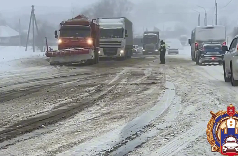 В связи с обильным снегопадом, обрушившимся накануне на регион, сотрудники Госавтоинспекции несли службу в усиленном режиме и помогали водителям большегрузов и легковушек, застрявших в снегу.