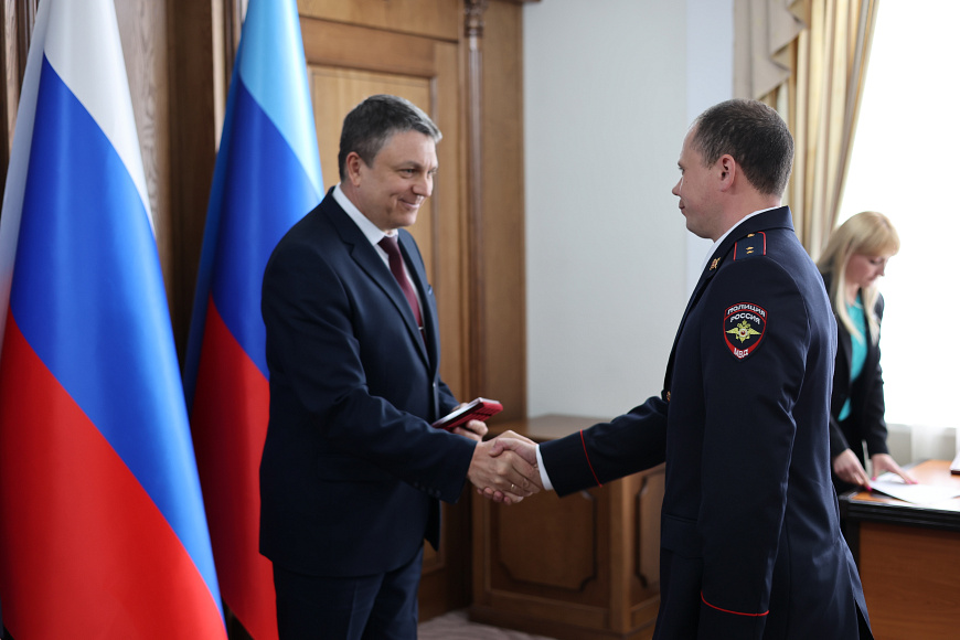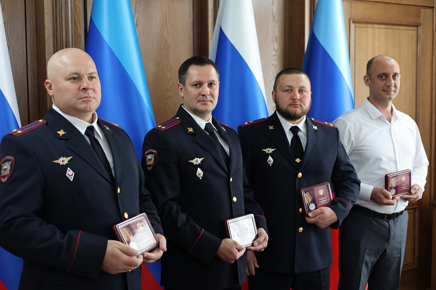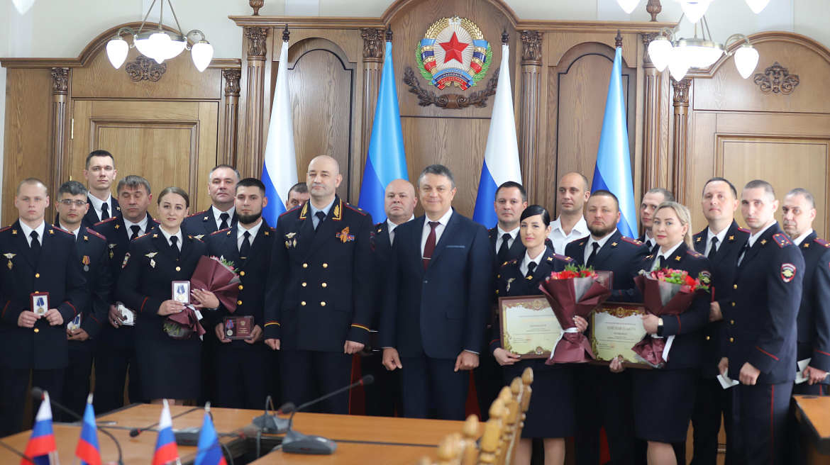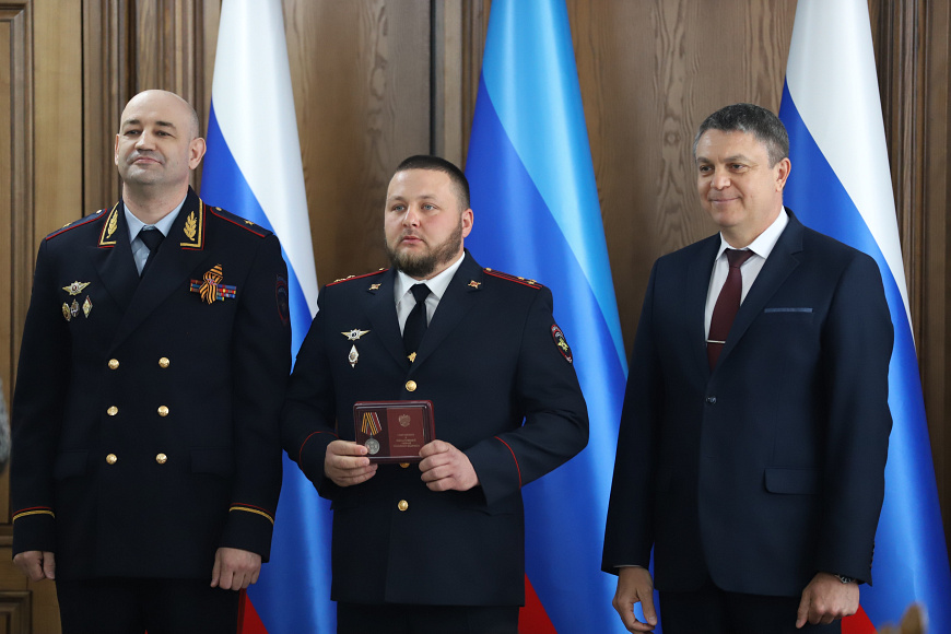 Глава ЛНР Леонид Пасечник подчеркнул, что все награждённые сегодня – настоящие патриоты, мужественные люди, которые ежедневно обеспечивают безопасность и оберегают покой земляков, в том числе и в прифронтовых населённых пунктах.