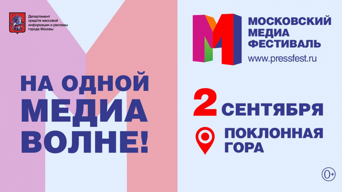«Московский медиафестиваль» пройдёт 2 сентября с 10.00 до 21.00 в Парке Победы на Поклонной горе. Вход свободный. 0+