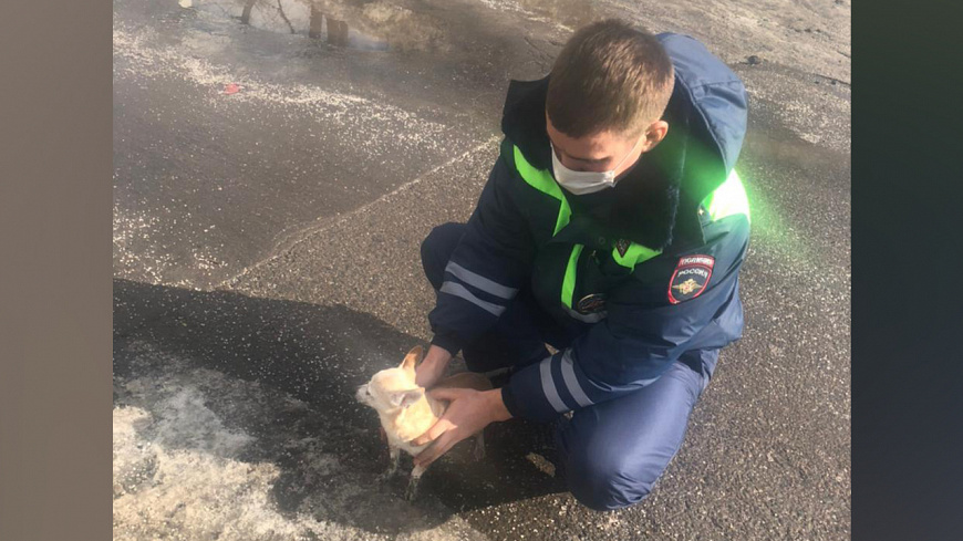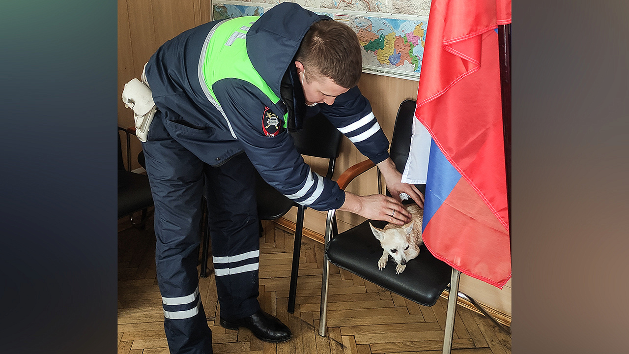 В Москве сотрудники Госавтоинспекции спасли собаку и вернули ее хозяйке