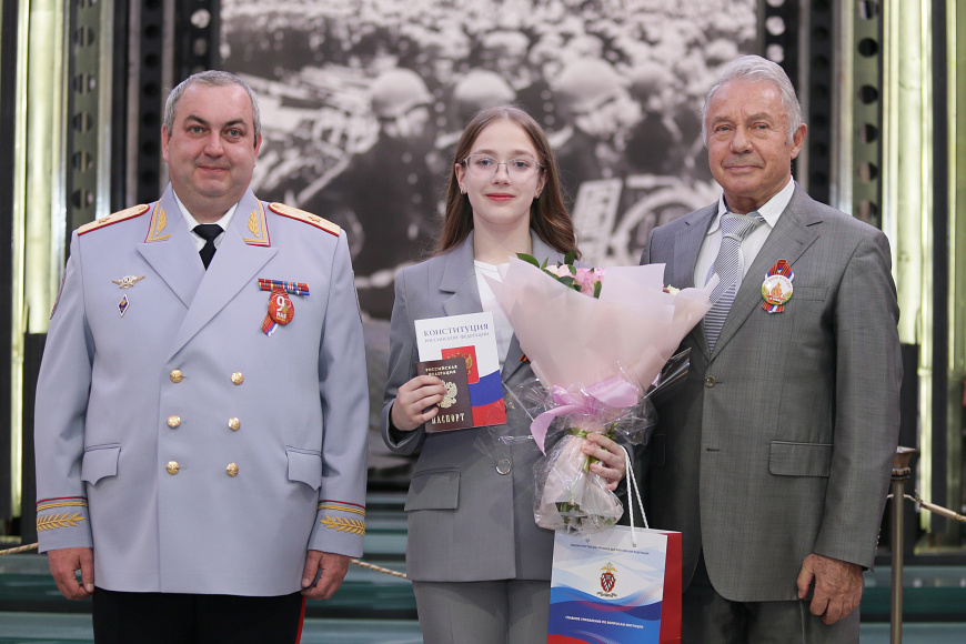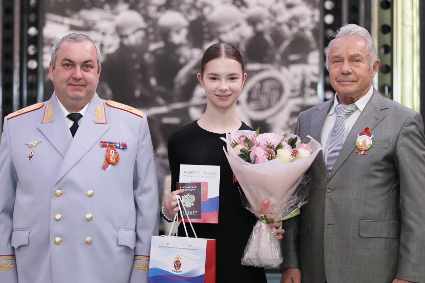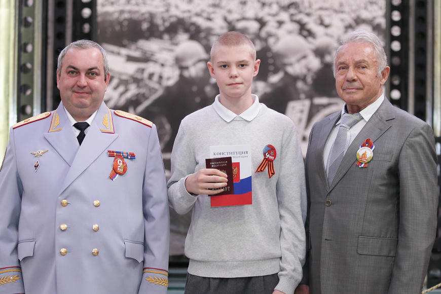 В преддверии важного государственного праздника 80-й годовщины Победы в Великой Отечественной войне 1941-1945 годов в Центральном музее Вооруженных Сил Российской Федерации перед Знаменем Победы заместитель начальника Главного управления по вопросам миграции Министерства внутренних дел Российской Федерации генерал-майор полиции Геннадий Кудряшов вручил юным гражданам первые паспорта.