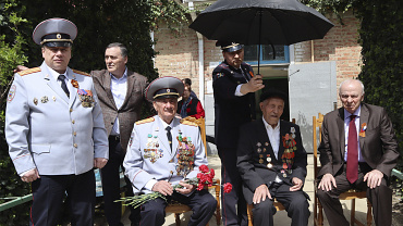 Гости вручили фронтовику памятный подарок, приветственный адрес и цветы. Ветеран поделился воспоминаниями о своей военной и милицейской службе, поблагодарив за оказанное внимание.