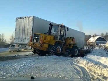 Автоинспекторы обеспечили безопасность дорожного движения на данном участке дороги и обратились за помощью к мужчине, у которого имелся бульдозер.