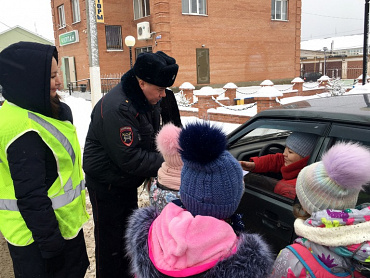 Инспекторы помогали юным пешеходам правильно переходить проезжую часть, показали, как нужно использовать световозвращающие элементы и рассказали о их пользе.