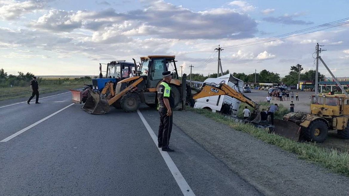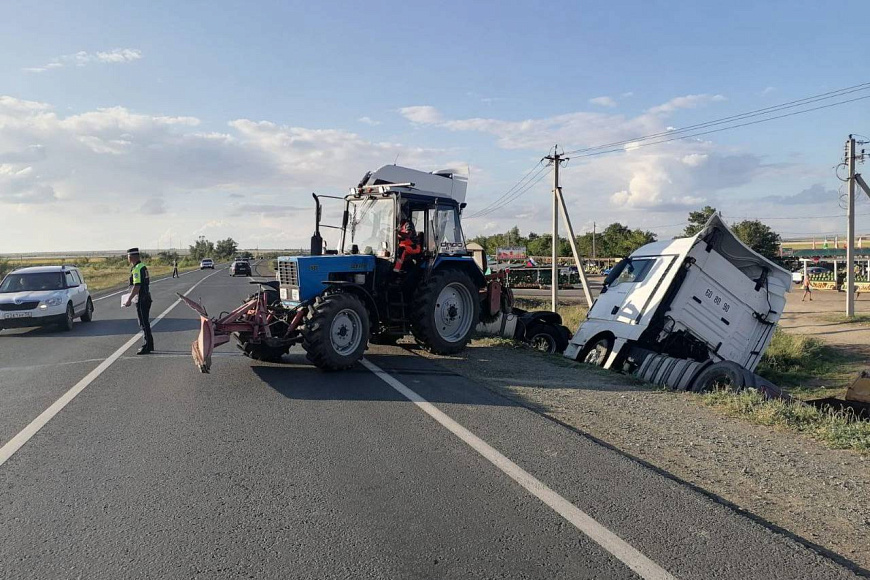 Незамедлительно отреагировав на поступившее о ДТП сообщение, на место выдвинулся экипаж ДПС в составе сотрудников Госавтоинспекции ОМВД России по Соль-Илецкому городскому округу майора полиции Александра Олейника и старших лейтенантов полиции Василия Ящука и Мурата Сареева. Увидев, что своими силами тягач не может выехать из глубокой канавы, полицейские вызвали спецтехнику, чтобы вытащить грузовик на трассу.