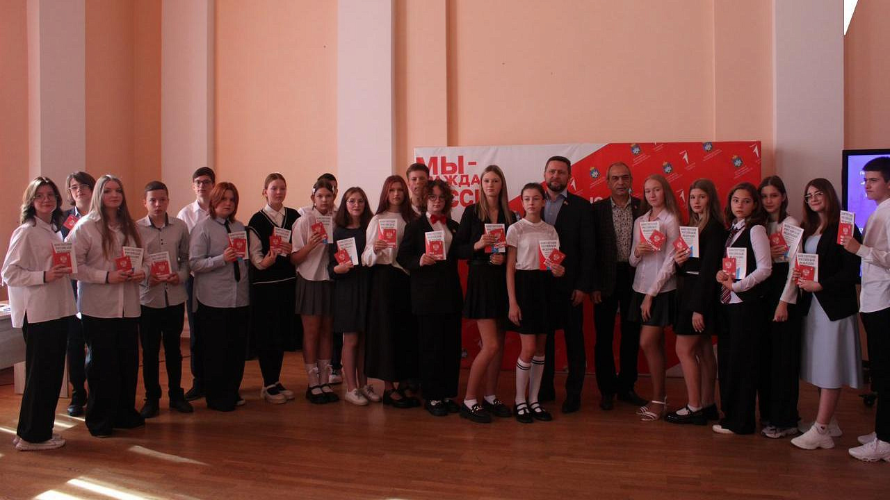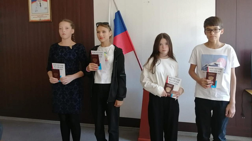 Помимо паспортов юные граждане также получили памятные подарки – экземпляры Конституции России.
