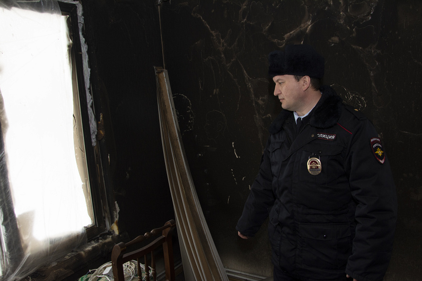 Мужчины направились в задымлённый подъезд, но обнаружить источник возгорания было невозможно. Приняв решение об эвакуации граждан, они вбежали на 2 этаж дома и начали оповещать всех жильцов о пожаре. Услышав, что из квартиры № 13 доносятся стоны о помощи, страж правопорядка со своим помощником подбежал к открытой входной двери и увидел, что квартира объята пламенем.