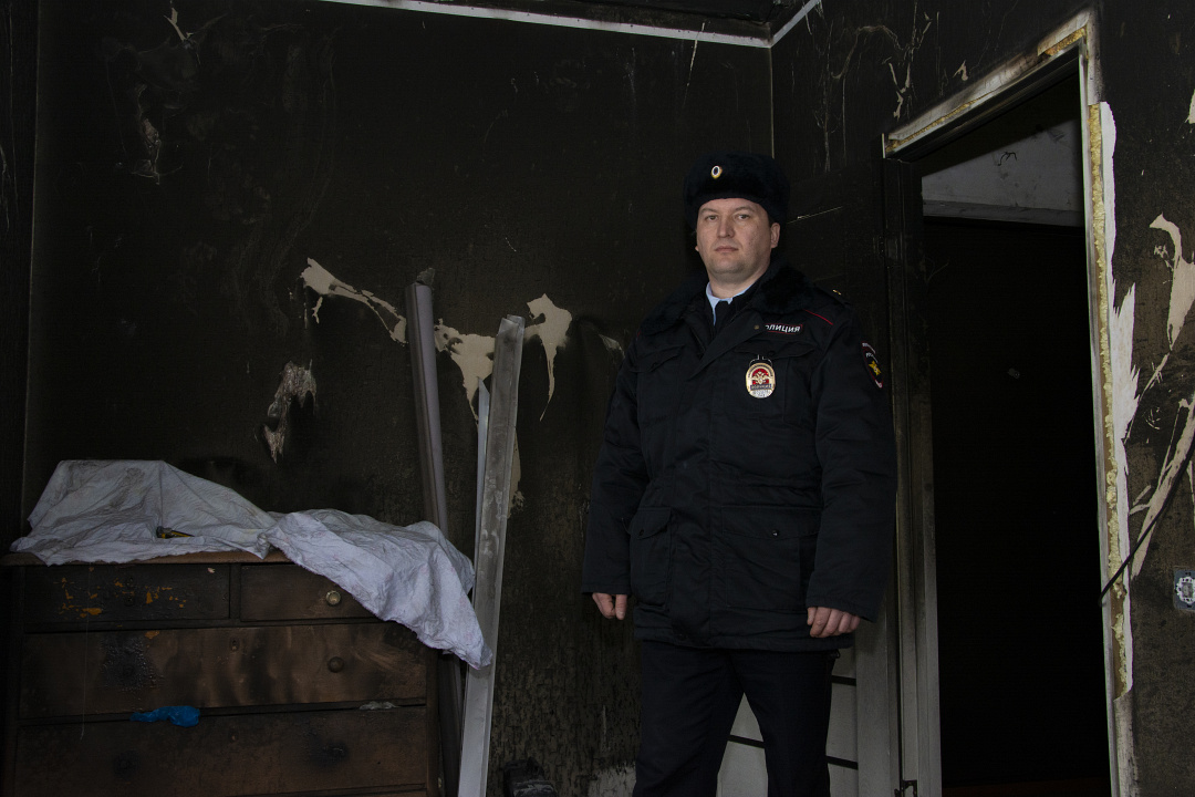 Полицейский незамедлительно направился на указанный адрес, попутно сообщив оперативному дежурному о произошедшем. Прибыв на место происшествия, он увидел, что из нескольких квартир четырёхэтажного дома вырываются клубы дыма. В этот момент к нему на выручку вызвался местный житель – Руслан Беленков.