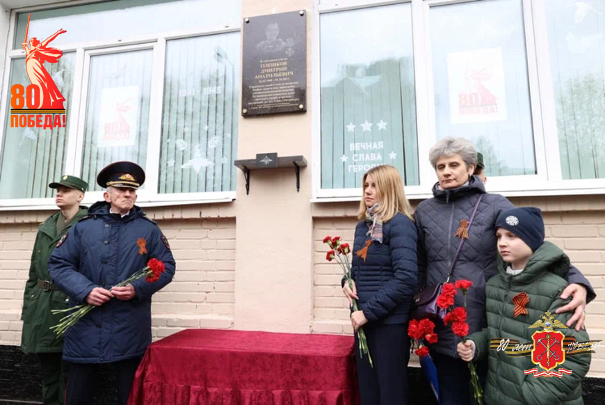 Сегодня, 6 мая 2025 года, в лицее № 95 Калининского района города Санкт-Петербурга прошло мероприятие, посвящённое памяти ветерана органов внутренних дел Дмитрия Олешкова, в октябре 2023 года героически погибшего в зоне специальной военной операции. В церемонии открытия мемориальной доски принял участие заместитель начальника ГУ МВД России по г. Санкт-Петербургу и Ленинградской области генерал-майор внутренней службы Игорь Парадеев.