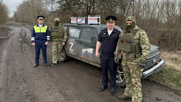 Колонна с автомобилем, снаряжением, продуктами питания и маскировочными сетями была доставлена в Курскую область при сопровождении экипажа ДПС окружной Госавтоинспекции.