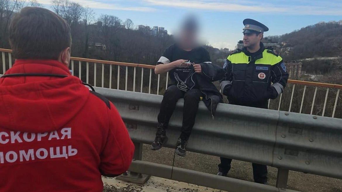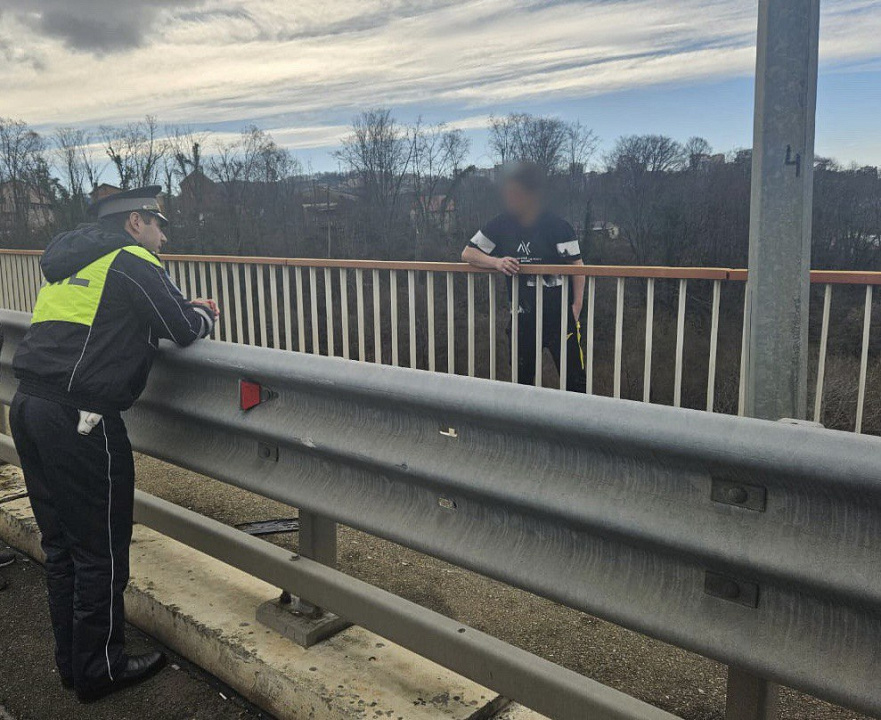Инспекторы полка ДПС ГИБДД УВД по городу Сочи старшие лейтенанты полиции Артем Цатурян и Александр Золотарев, находясь на маршруте патрулирования на улице Транспортной в Хостинском районе, заметили на мосту женщину, которая перелезла через ограждение и намеревалась спрыгнуть с 20-метровой высоты.
