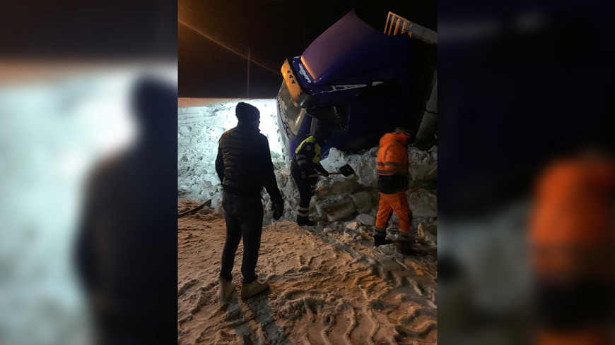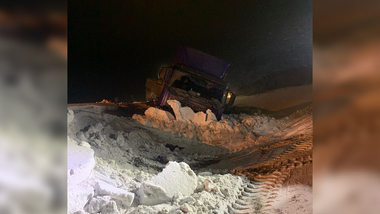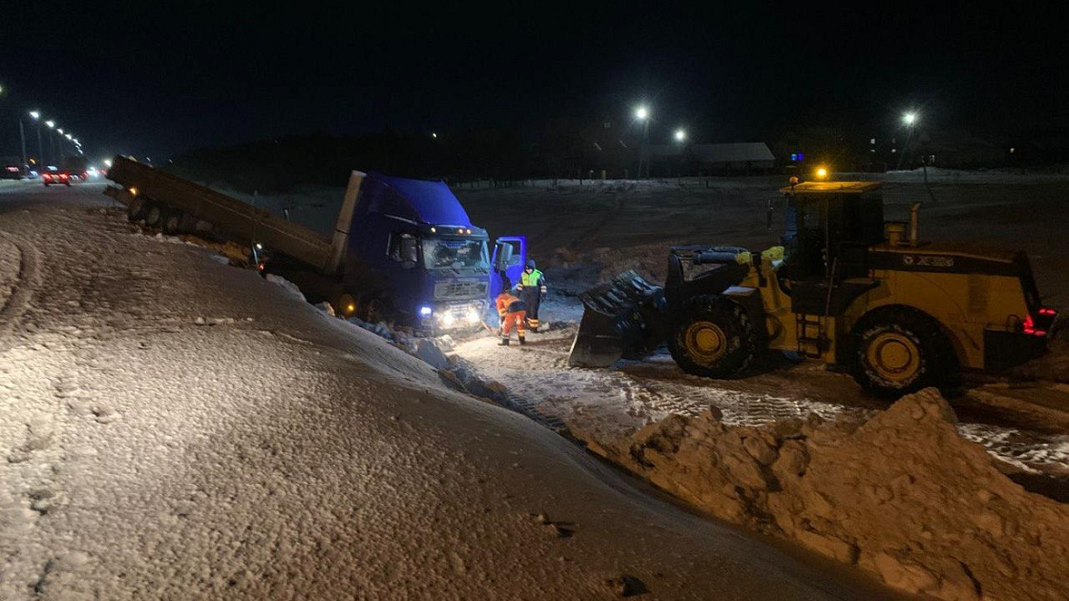 В Татарстане автоинспекторы помогли вызволить из снежного плена большегруз, угодивший в кювет