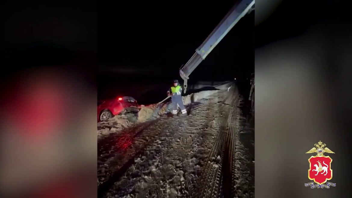 Сотрудники полиции остановились на обочине и поспешили на помощь автовладельцу, от которого узнали, что тот не справился с управлением, в результате чего транспортное средство оказалось в овраге. В салоне машины находились супруга автомобилиста и маленький ребёнок.