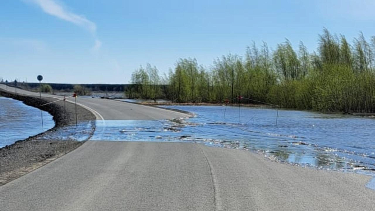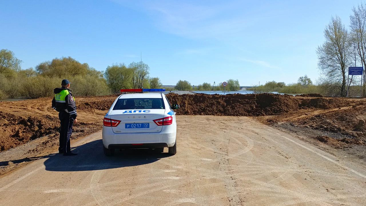 В Тюменской области инспекторы ДПС несут службу на перекрытом из-за подтопления участке дороги